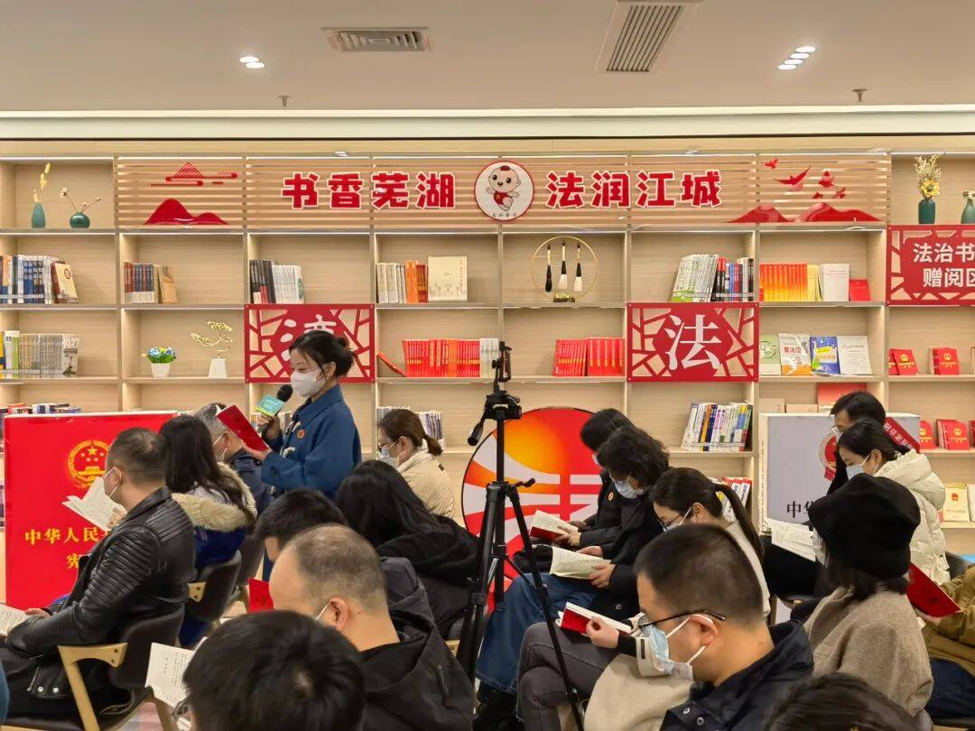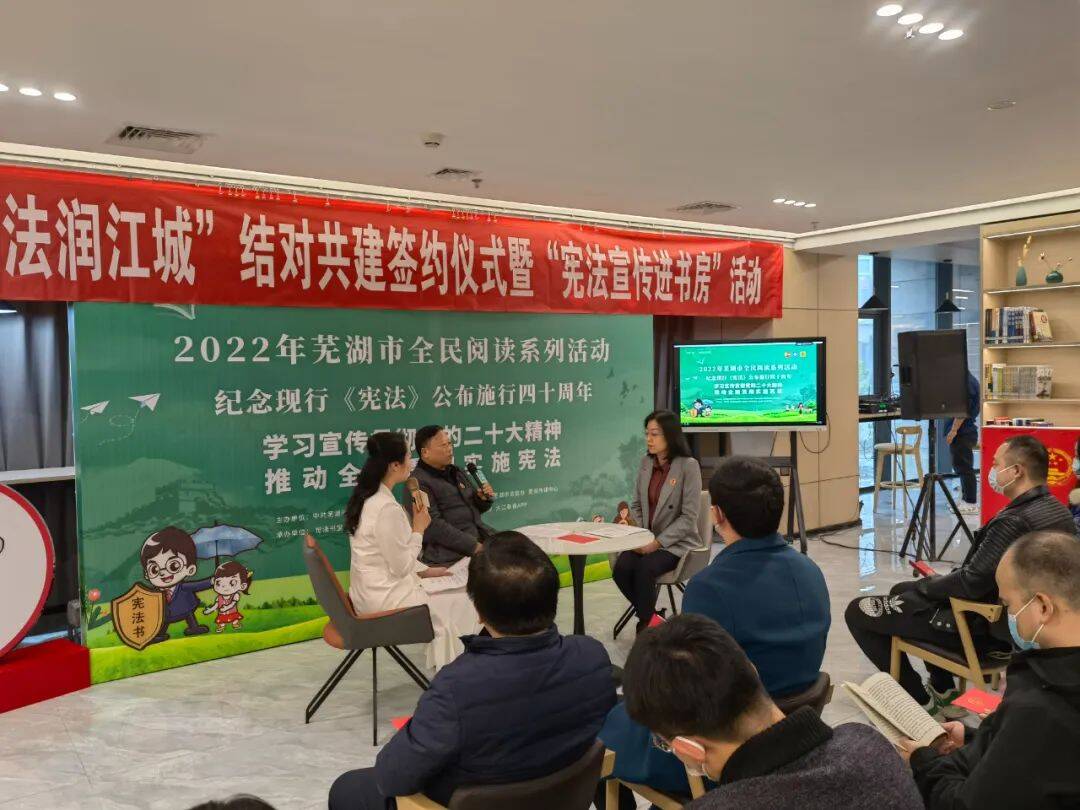 12月9日下午,2022年芜湖市全民阅读系列活动《公民与法——书香法治沙龙》第十期直播,在芜湖书房·觉浅书堂举行。本期活动聚焦宪法,围绕“学习宣传贯彻党的二十大精神,推动全面贯彻实施宪法”进行普法解读。