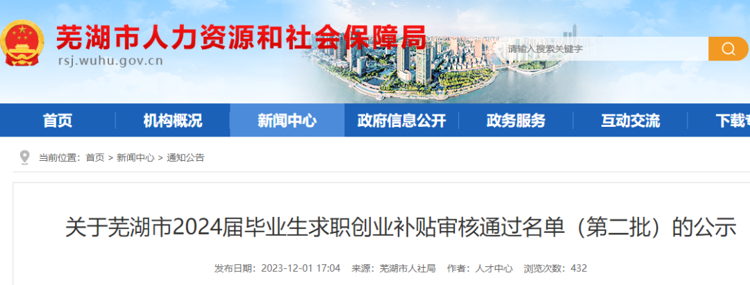 芜湖这些人,一次性发1500元补贴! 字体大小: T T 2023-12-04 14:06 市人力资源和社会保障局近日发布芜湖市2024届毕业生求职创业补贴审核通过名单(第二批)的公示,全市各高校、中等职业学校、技工院校等,共计1434名毕业生通过求职创业补贴审核,每人将获得1500元补贴,且一次性发放。据了解,根据此前安徽省人社厅、省教育厅、省民政厅等7部门联合下发的《关于做好2024届毕业生求职创业补贴信息化发放工作的通知》,我省对符合条件的2024届城乡居民最低生活保障家庭、困难残疾人家庭、脱贫户(原建档立卡贫困户)家庭及防返贫监测户家庭、退捕渔民家庭、获得国家助学贷款、残疾人身份以及特困人员中的2024届高校、中等职业学校、技工院校毕业生,按1500元/人的标准一次性发放求职创业补贴。经学生自愿申请、系统审核和书面材料复核,芜湖市共有1434名毕业生符合申报条件,具体名单正在公示。▍记者:周一平