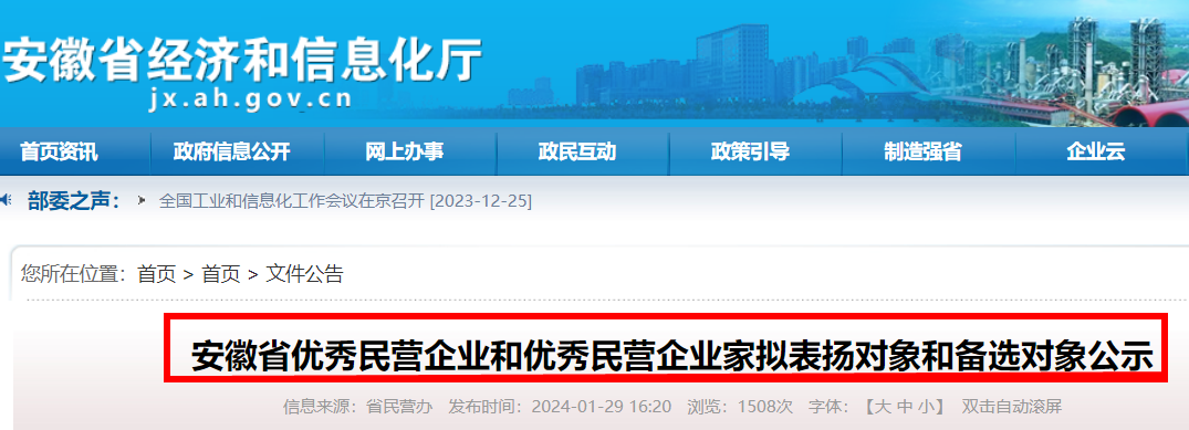 安徽省优秀民营企业和优秀民营企业家拟表扬对象和备选对象公示