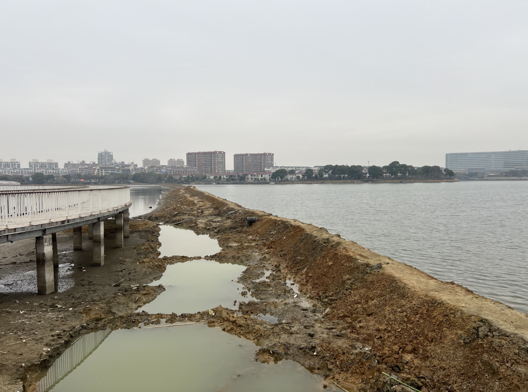 银湖位于芜湖经开区,水面面积0.48平方公里,纵深广阔,平均水深1.5米。但水底沉积了大量淤泥,影响水质。去年底,经开区启动了银湖内源污染控制工程。目前,湖水东侧工程已完毕,正在向西侧推进。