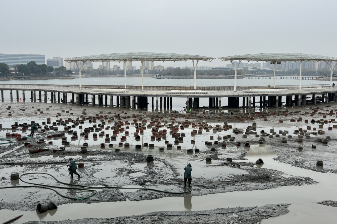 随着抽水完成,靠近银湖大桥、轨道交通沿线的湖底显现很多大小不一的陶盆。这到底是怎么回事?大江资讯记者来到现场一探究竟。