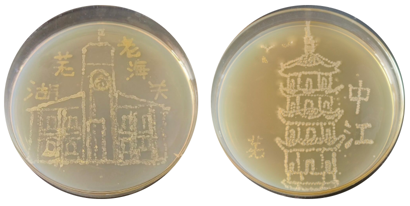 从王希孟的《千里江山图》到芜湖的中江塔、老海关等美景,再到附中120周年校庆、校徽等元素,这些内容如今被安师大附中一群高二学生以一种意想不到的独特方式——“微生物绘画”重新呈现。
