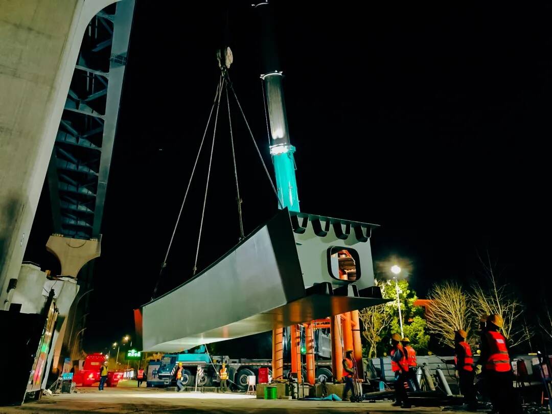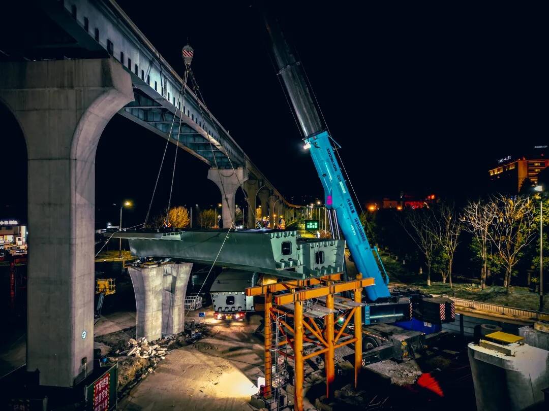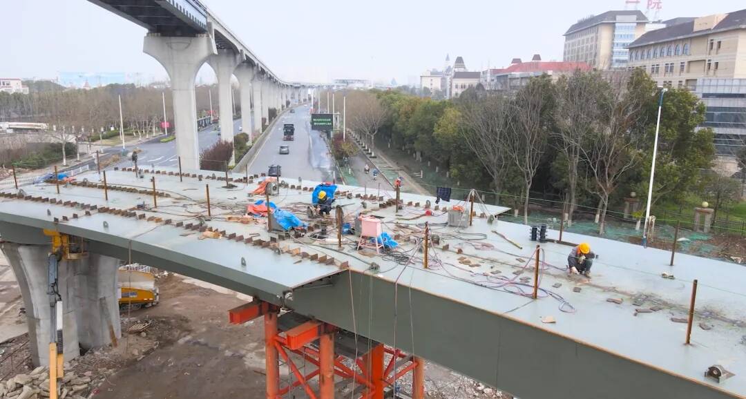 记者日前走进施工中的徽州路快速化工程现场看到,位于徽州路与赤铸山路交叉口上方的WN匝道桥仍在紧张施工中。现场施工人员告诉记者,匝道桥施工共计要架设4跨钢箱梁,目前首联钢箱梁已于3月22日夜间吊装完成,余下的工程量将在4月下旬全部完成。“我们实行夜间封路架梁,选择的是起重机分段吊装,现场焊接拼装法,虽然施工难度较大,但是可以较好地保障赤铸山路白天正常通行和行人安全。”