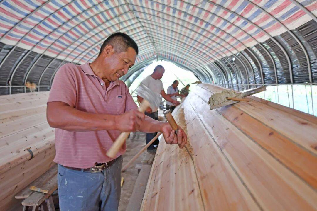 “总长22米,最宽处达1.5米,通体是杉木制作,近2吨重,每个环节都是手工完成。”