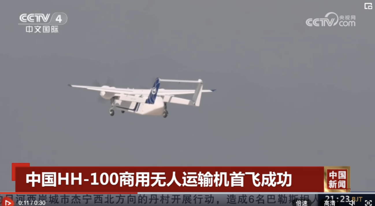 6月12日,央视新闻、央视中文国际等频道的多个新闻栏目报道了我国自主研制的HH-100商用无人运输机成功首飞的消息。大江资讯记者了解到,该型商用无人运输机的发动机由芜湖钻石航发公司自主研发,在芜湖制造。