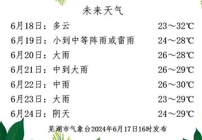 每年6月中下旬,芜湖人的老朋友“梅雨”