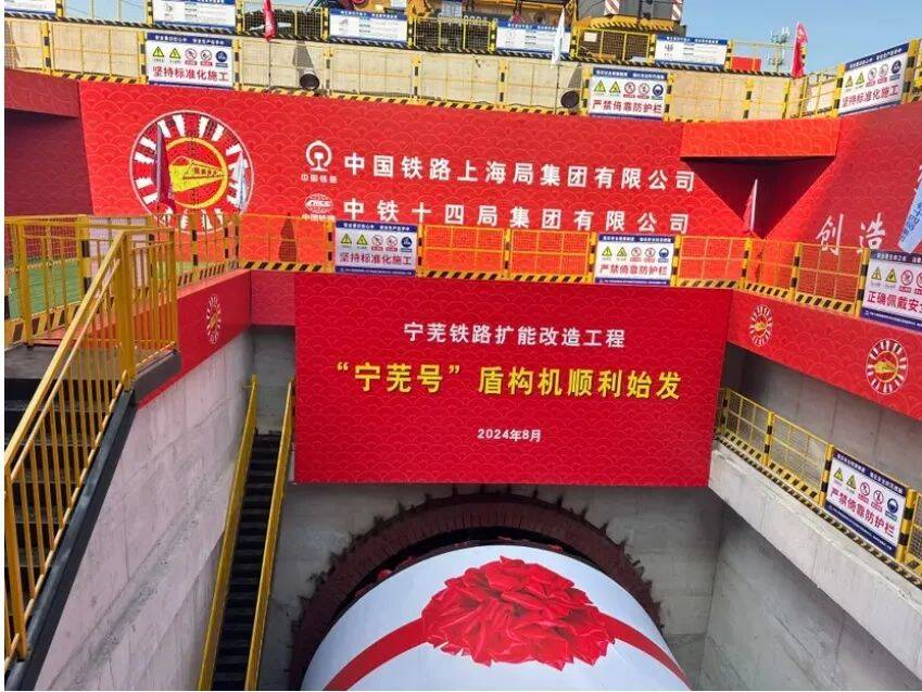8月12日9时18分,南京市雨花台区梅香路宁芜铁路扩能改造工程施工现场,南京南隧道“宁芜号”盾构机刀盘缓缓转动,标志着南京南隧道进入盾构施工阶段,宁芜铁路扩能改造工程建设取得重大进展。