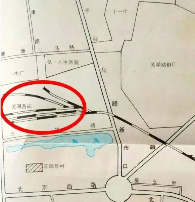 图为80年代芜湖地图中标注有“芜湖西站”