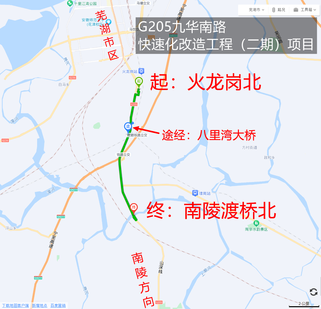 据大江资讯此前报道,今年4月,G205芜湖九华南路快速化改造工程(二期)项目主线顺利通车。项目道路等级为一级公路兼城市快速路,设计时速80千米。