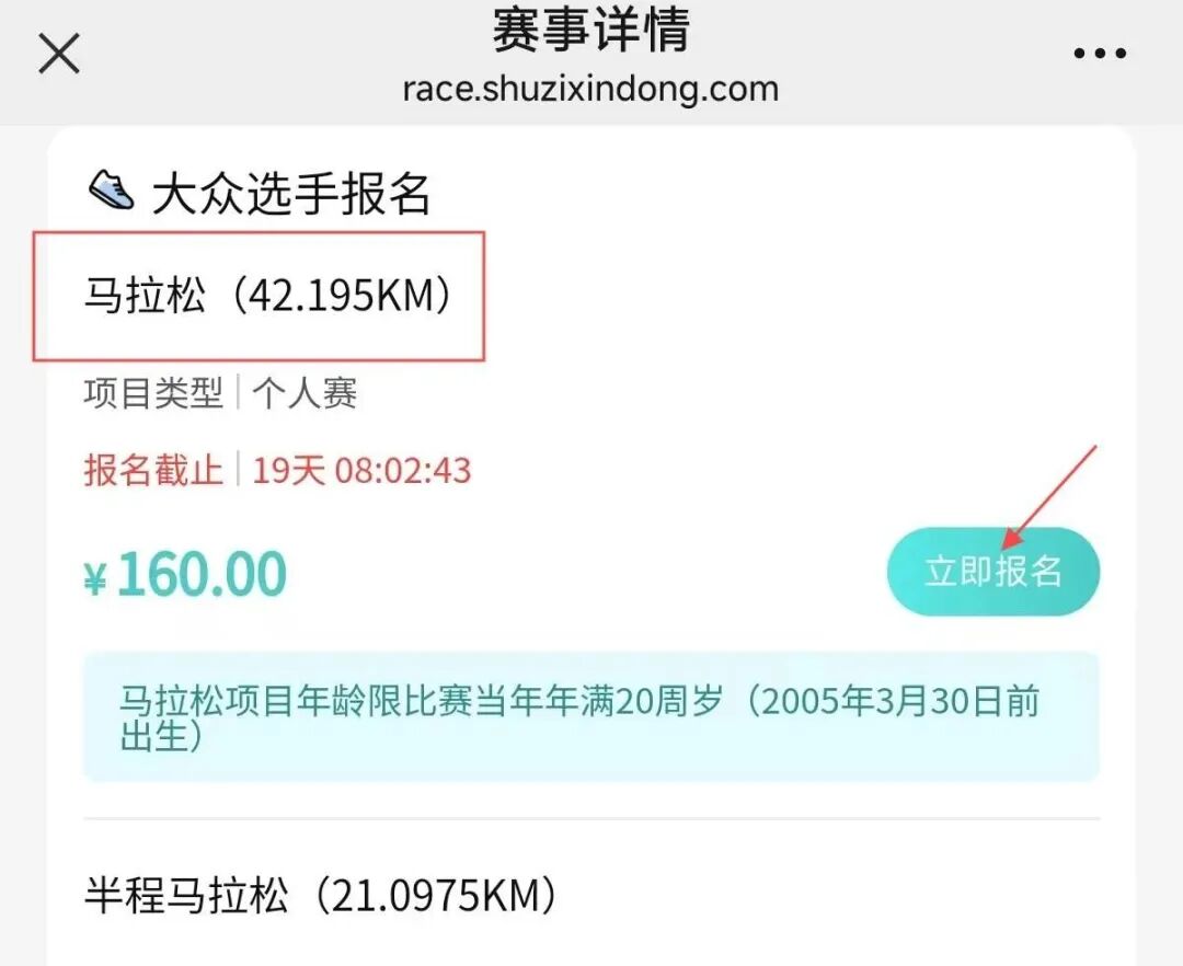 选择你想报名的参赛项目,点击“立即报名”;