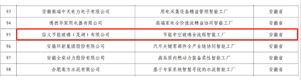 近日,工信部公示了全国第一批卓越级智能工厂项目名单(共235家),安徽6个项目入选,信义节能玻璃(芜湖)有限公司作为节能中空玻璃全流程智能工厂名列其中。 据了解,前期,工信部、国家发改委、财政部、国务院国资委、市场监管总局、国家数据局联合开展了2024年度智能工厂梯度培育行动,分基础级、先进级、卓越级和领航级四个层级开展智能工厂梯度培育,并同步组织了第一批卓越级智能工厂申报遴选工作。其中,卓越级智能工厂应在设计生产经营数据集成贯通、制造装备智能管控、生产过程在线优化、产品全生命周期和供应链全环节综合优化、多场景系统级智能化应用、主要技术经济指标等方面处于国内同行业领先水平,并起到行业引领带动作用。据悉,市工信部门近年来持续加速产业数字化转型升级的进程,2024年全市新认定无为弗迪电池有限公司“新能源动力电池智能工厂”、芜湖天海电装有限公司“乘用车整车线束总成智能工厂”等10家市级智能工厂,安徽孚祯汽车动力系统有限公司“8AT自动变速箱数字化车间”、芜湖海立新能源技术有限公司 “柔性化汽车空调压缩机数字化车间”等21个市级数字化车间。奇瑞汽车股份有限公司“汽车柔性化生产智能工厂”等3个项目获省级智能工厂认定,安徽孚祯汽车动力系统有限公司“8AT自动变速箱数字化车间”等14个项目获省级数字化车间认定。截至目前,全市累计认定市级智能工厂65家、数字化车间178个,认定省级智能工厂22家、数字化车间111个,同时成功创建9座国家级5G工厂。