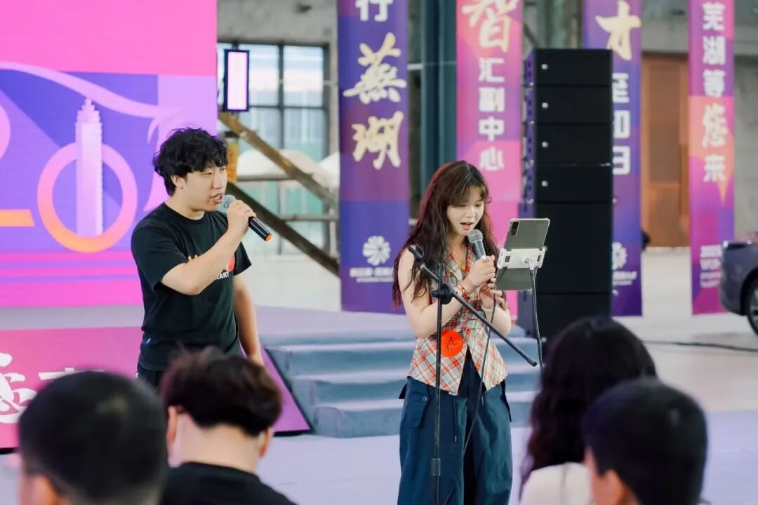 当天,在芜湖老船厂1900·新场 REBOX的白色帷幔、紫色海报下,来自全国44所高校的139位博士和硕士在这里奔赴“2025年芜湖紫云英人才日”之约。