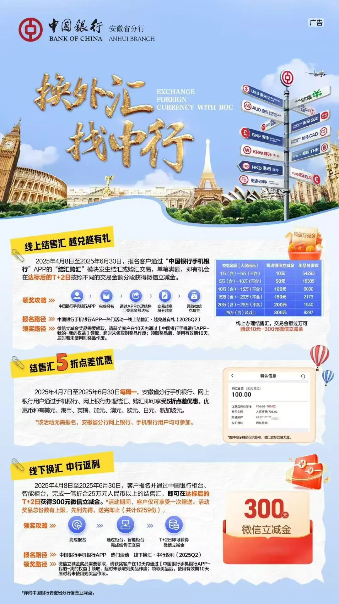 作为主要承办方及出国金融服务领先银行,中国银行芜湖分行将展示覆盖留学全周期的一站式金融服务方案。从出国前的存款证明、留学贷款、跨境信用卡、代理海外开户见证,到留学期间的购汇、跨境汇款、外币线上预约、外币零钱包,再到归国后的跨境收款与结汇等业务,中国银行芜湖分行致力为学子提供专业、高效、安心的金融保障。