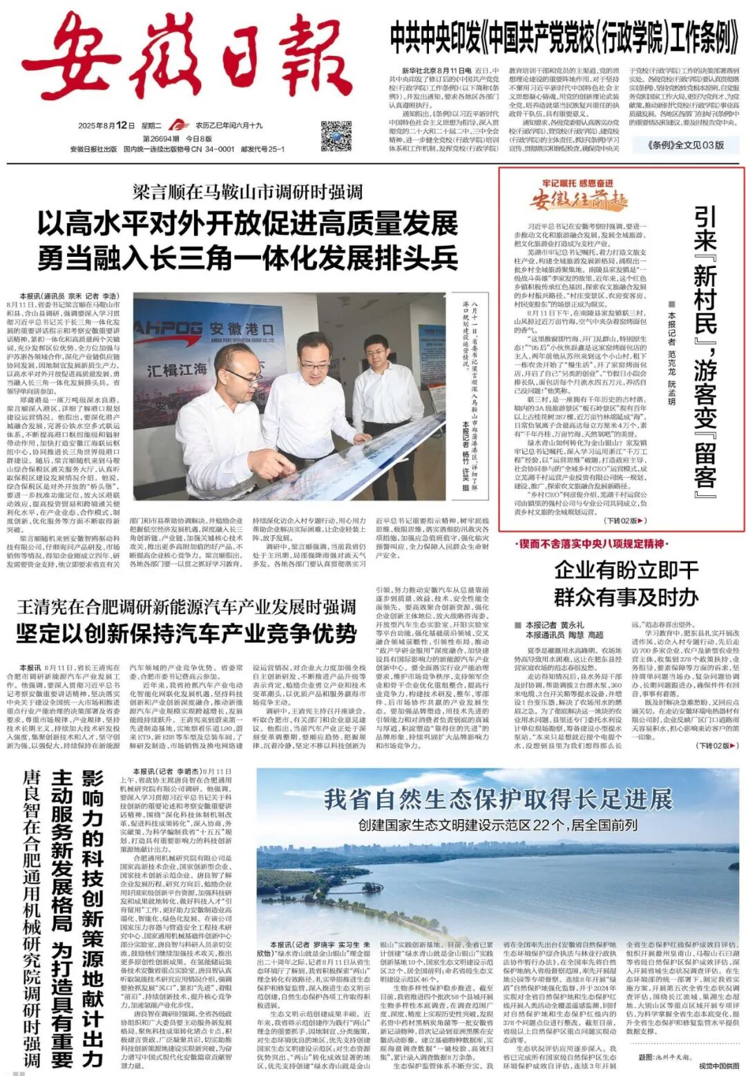 8月12日,安徽日报“安徽往前赶”栏目报道《引来“新村民”,游客变“留客”》,聚焦芜湖市南陵县家发镇以农文旅融合激活乡村振兴新动能,通过“全域乡村CEO”模式盘活生态资源、招募“新村民”打造16种新业态,实现年接待游客28万人次、村集体经济收入730万元的转型实践。全文如下: