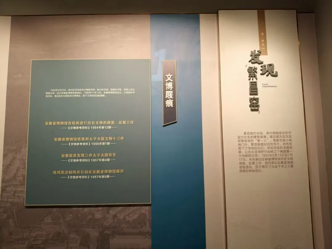 在繁昌博物馆葛召棠生平事迹展厅,玻璃展柜中的狮钮铜印、田野调查报告和书法长卷,在光影交错中诉说着一个动人的故事。展厅主要以葛召棠先生一生中最突出的三种身份作为叙述的串联。作为大法官,他是审判南京大屠杀战犯的正义化身;作为文博专家,他是发现繁昌窑的第一人;作为书法家,他的作品曾与郭沫若、张大千等大师比肩。这三种身份交织在一起,勾勒出一位知识分子的家国情怀与文化担当。