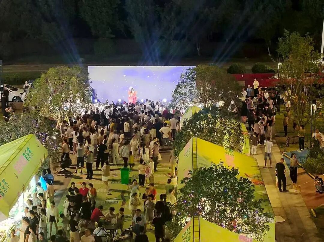 花津桥宜邻中心一楼的夜市活动将持续到10月,为夏夜增添烟火气。