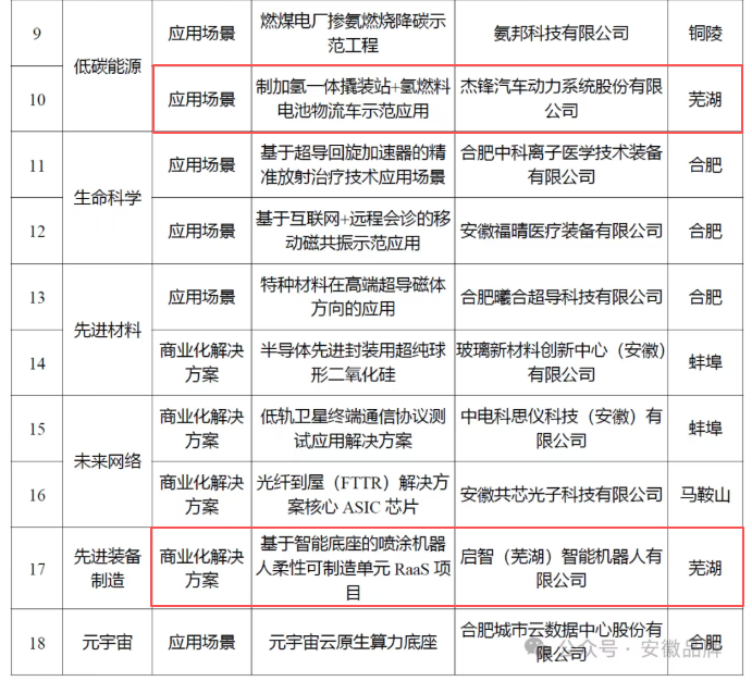 为强化场景创新驱动,推动前沿技术、产品规模应用和迭代升级,培育壮大未来产业,按照《安徽省未来产业发展行动方案》(皖政办秘〔2024〕66号)要求,省发展改革委联合省科技厅、省工业和信息化厅在各地申报基础上,经部门推荐、专家论证、集中研究等程序,遴选形成了拟入选2025年省级未来产业标杆应用场景和商业化应用解决方案案例18个、优秀应用场景和商业化应用解决方案案例16个,现予以公示。 公示时间:2025年9月12日—9月18日。公示期间,如有异议,请向省发展改革委高技术发展处反映。反映方式以来人或署名来信(包括电子信函),对匿名方式提出异议的不予受理。 联系电话:0551—62602765 电子邮箱:sfgwgjsc@126.com 通信地址:合肥市包河区中山路1号省发展改革委高技术发展处 邮政编码:230091