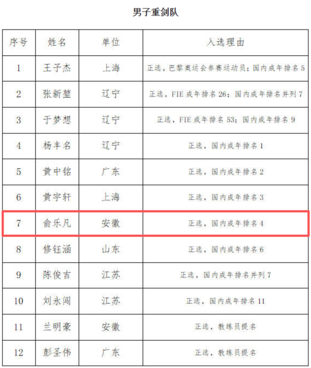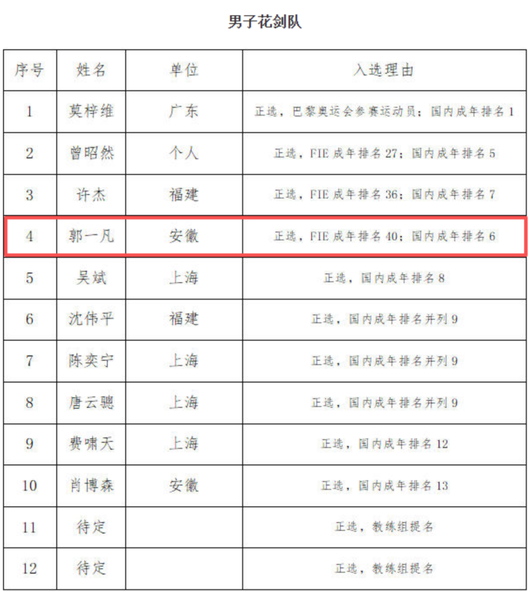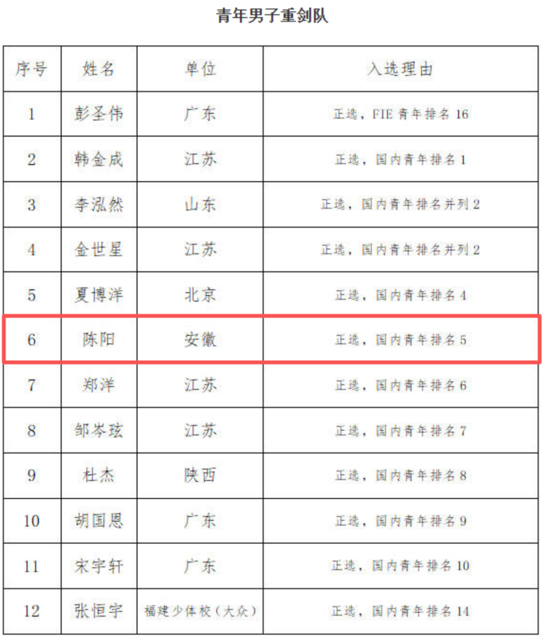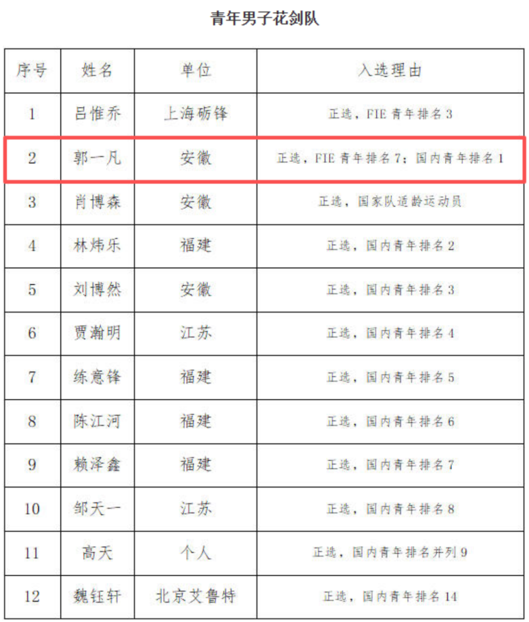 此次入选的三名运动员中,俞乐凡入选男子重剑队,他于2018年6月至2025年5月长期在国家队效力,本次属于“再度入选”,将以丰富经验为男子重剑项目攻坚助力;郭一凡则同时入选男子花剑队和青年男子花剑队,他于2023年9月入选国青队、2024年5月入选国家队,目前持续在两支队伍中保持竞争力,是花剑项目的“双轨型”潜力选手;陈阳则迎来个人突破,首次入选青年男子重剑队,将在国青梯队中接受系统训练,为击剑后备力量发展注入新活力。
