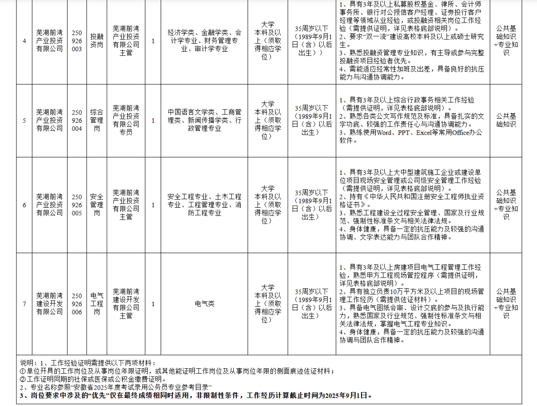 面向社会公开招聘下属公司正式员工7名,详见附件:《芜湖前湾集团有限公司下属公司2025年公开招聘岗位计划表》。