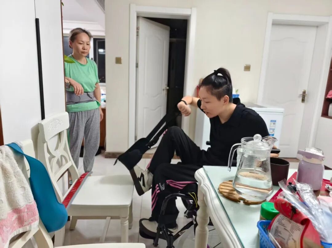 在那里,她不再是孤单的“个体”——她和病友们交流心得、互相鼓励,渐渐学会了与 “新身体” 共处,也创造了一个又一个“不可能”:6年来第一次独自完成洗脸刷牙和吃饭;第一次自己开关门;第一次熟练锁住轮椅,甚至第一次成功越过了小门槛……这些实实在在的进步,像一束束光,照亮了她的生活,也让她重新找回了信心与希望。如今的她,已经适应了长时间坐在轮椅上,生活多了几分自主。