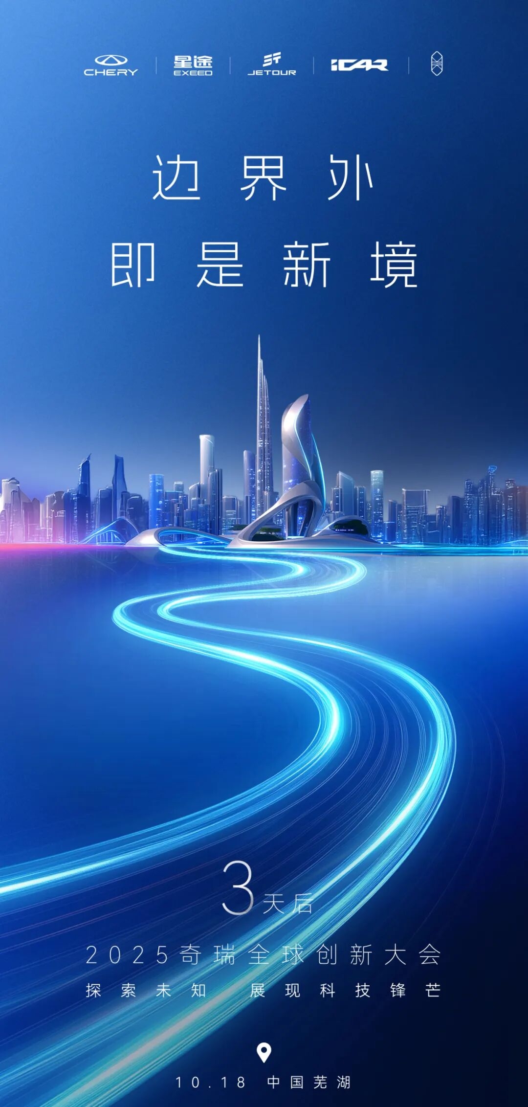2025奇瑞全球创新大会即将启幕,届时前沿科技荟萃,创新思维激荡。诚邀您一同见证奇瑞的未来图景,共赴科技盛宴,2025奇瑞全球创新大会敬请期待!