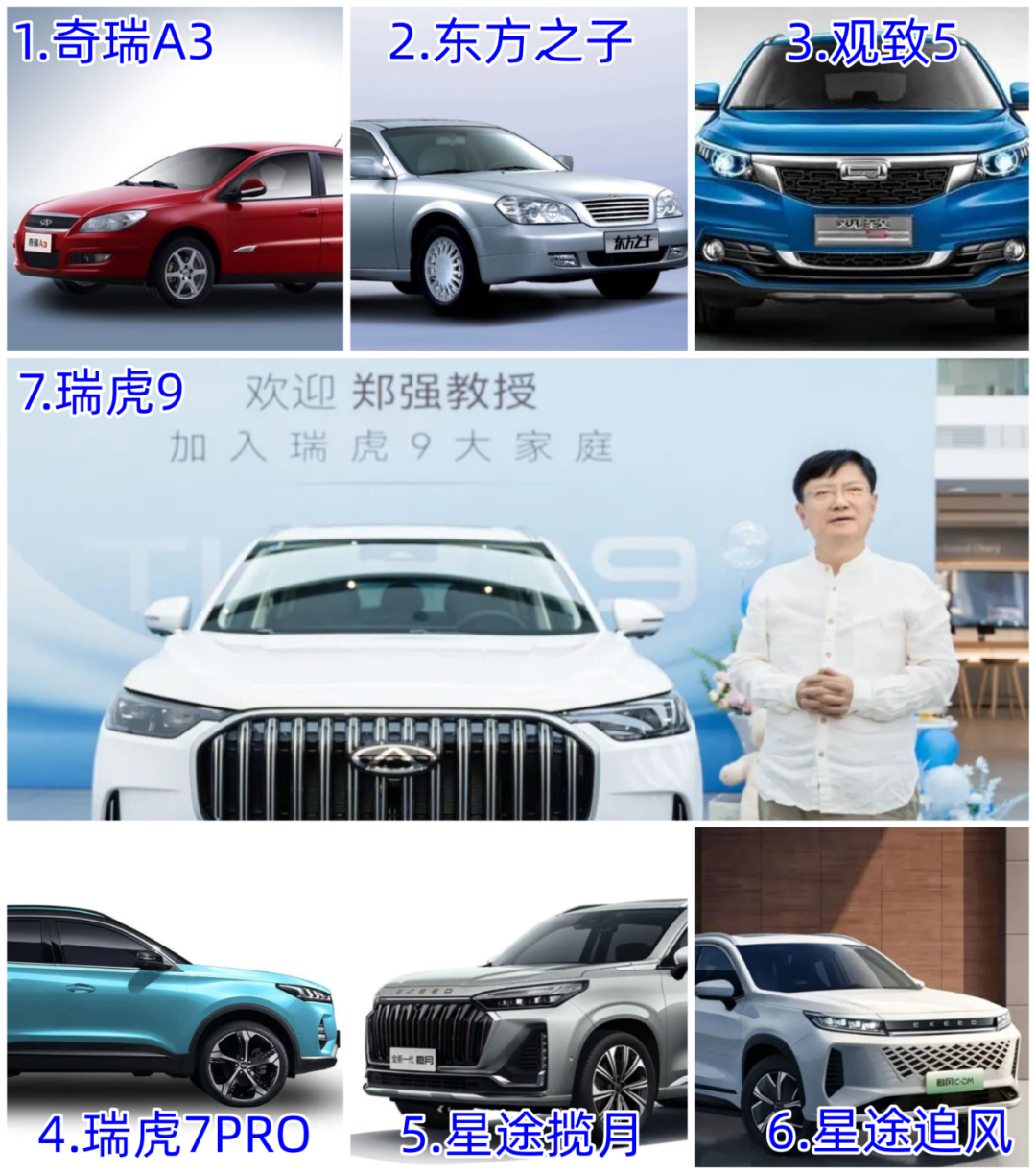 相比较而言,郑强教授堪称奇瑞的“忠粉”。他到浙江大学任教后,不顾“学校后勤处的阻拦”,毅然选择了排量1.6L的奇瑞A3作为自己的座驾。后来,又陆续购买了东方之子、观致5、瑞虎7PRO、星途揽月。2024年,郑强购买了自己的第6辆奇瑞汽车——星途追风。不久后,又通过置换的方式买回了他的第7辆奇瑞车——瑞虎9。