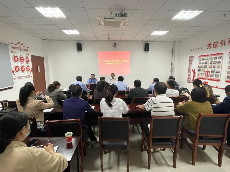 为贯彻落实“人民调解为人民 全力护航二十大”专题活动,进一步提高专职人民调解员业务水平,增强信访案件化解能力,4月27日,南陵县司法局组织开展专职人民调解员业务培训,共25名镇级和行业性专业性调委会专职调解员参加培训。