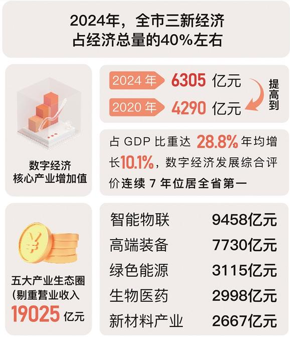 增长的背后,是质量与效率的同步提升。2024年,全市一般公共预算收入达2640亿元,连续三年居全国城市第 四,其中税收占比86.5%,连续15年领跑全国副省级城市;全员劳动生产率从22.9万元/人提升至28.4万元/人,人力资本价值持续释放。伴随着1262.4万常住人口的汇聚,人均GDP从14.3万元跃升至17.4万元(折合约2.44万美元),已接近中等发达经济体水平,让发展成果真正惠及每一位市民。