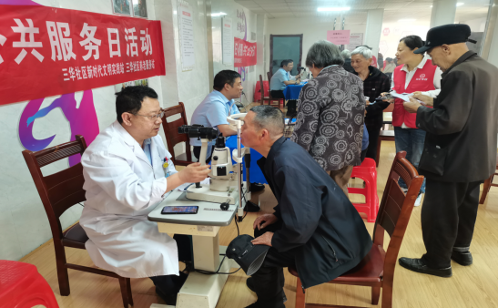 活动现场吸引了许多辖区的老人前来参与,社区工作者帮助居民做好登记工作,将提前准备好的号码按照顺序发给大家,社区志愿者们帮助老人们对号入座。磨刀、理发、量血压、眼部检查……每个服务摊位前都井然有序。在磨刀服务区,居民自觉地按顺序排队做好登记,磨刀师傅娴熟地摆弄着菜刀,每把刀都被仔细打磨得厚薄均衡、刀刃锋利。打磨好后,志愿者们还耐心地给居民们介绍了菜刀的使用和保养小技巧。在眼部检查区,有专业的昭美眼科医院医生为老人先进行视力测试,随后用专业的医疗机器进行进一步检查,不少老人被检查出患有白内障、青光眼、老花眼等问题,医生细心诉说治疗方案,让老人安心。在理发服务区,志愿者一手拿梳子、一手拿剪刀,用娴熟精湛的技术细心地为居民修剪头发。居民们看着理发师为自己剪出的满意发型,笑着说:“现在社区服务真好,不用特意跑到外面剪头发,省时又省力。”