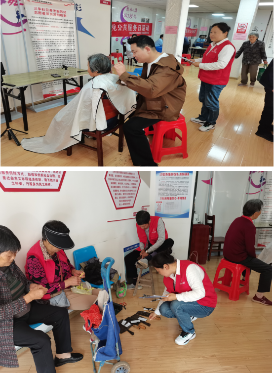 为增加邻里间的联系,推进建设睦邻友好邻里情,同时向居民提供方便、优质、实惠的便民服务。4月26日,三华社区养老服务站、三华社区新时代文明实践站携手各志愿单位(芜湖昭美眼科医院、三山艺流美发)共同开展公共便民服务日活动,让老人在家门口享受便捷、高效的服务,全力塑造新时代新邻里关系。