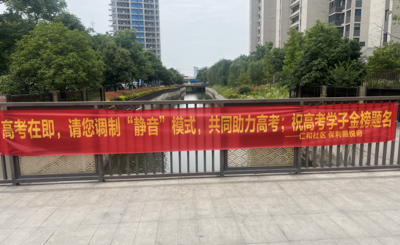 仁和社区工作人员介绍,今年高考前,保利熙悦府小区物业就积极准备起来,开展绿色护航服务,为实现2024年“安静、安全、温馨”高考,他们积极宣传,以线上推送信息、线下温馨提示张贴海报,在小区内悬挂祝福横幅等,确保为小区每一位参加高考的学子们创造一个安静舒适的学习、休息环境。