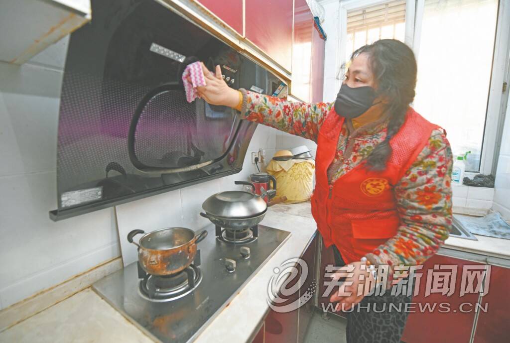 72岁的独居残疾老人翟光娣关节不好,长时间站着或是爬高蹲下都有些吃力,望着厨房的油污和卫生间的积垢,心有余而力不足。志愿者程翠霞和戴元秀来到她家后,立刻忙活开来。厨房里,程翠霞蹲在水槽边,用钢丝球用力擦拭着水槽边缝,黑渍渐渐消失。戴元秀则主攻油烟机和灶台,喷上清洁剂,油污慢慢溶解,抹布擦过,一片光亮。最后,两人和记者一起将L形的台面彻底擦洗了一遍。