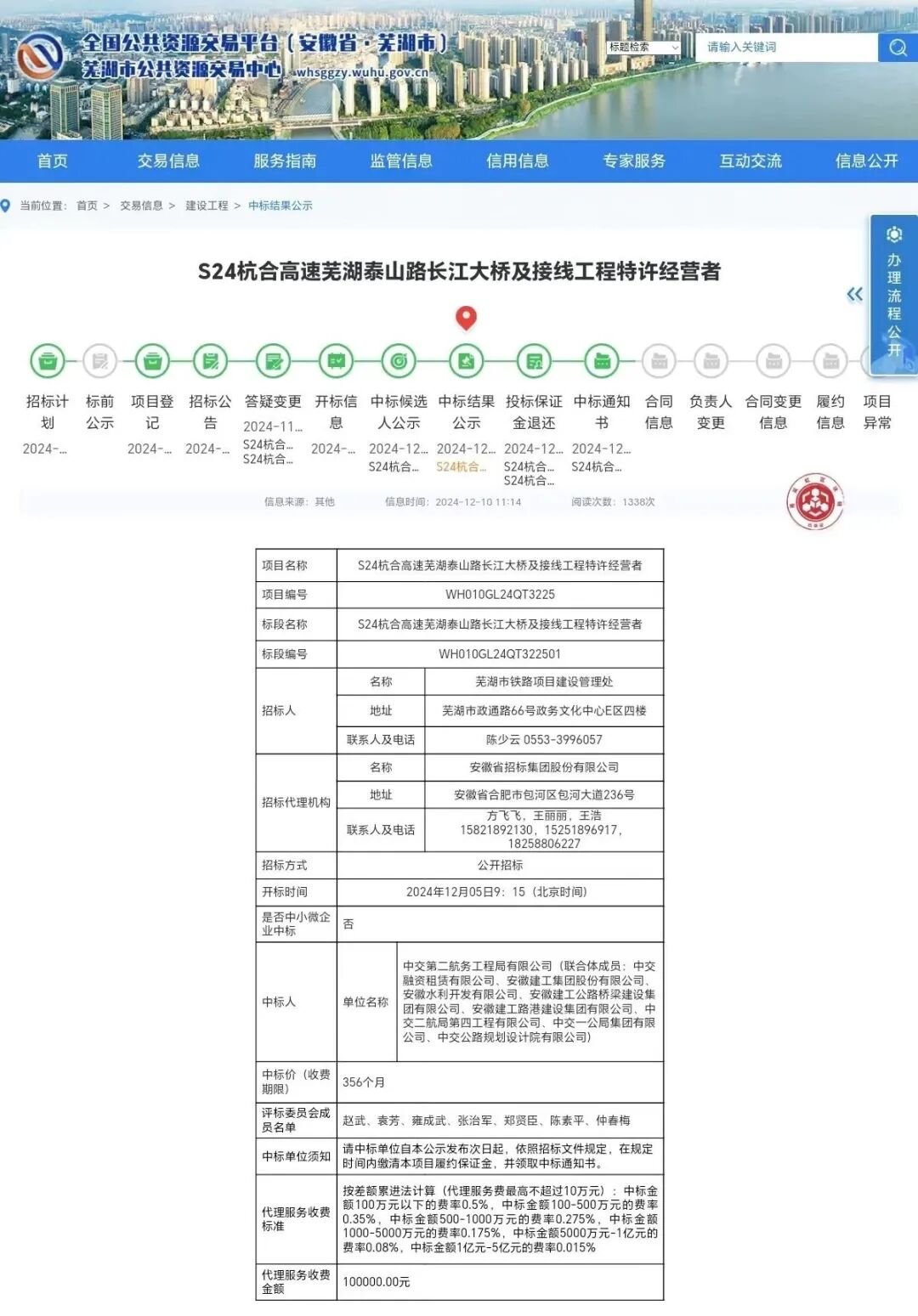 S24杭合高速芜湖泰山路长江大桥及接线工程项目