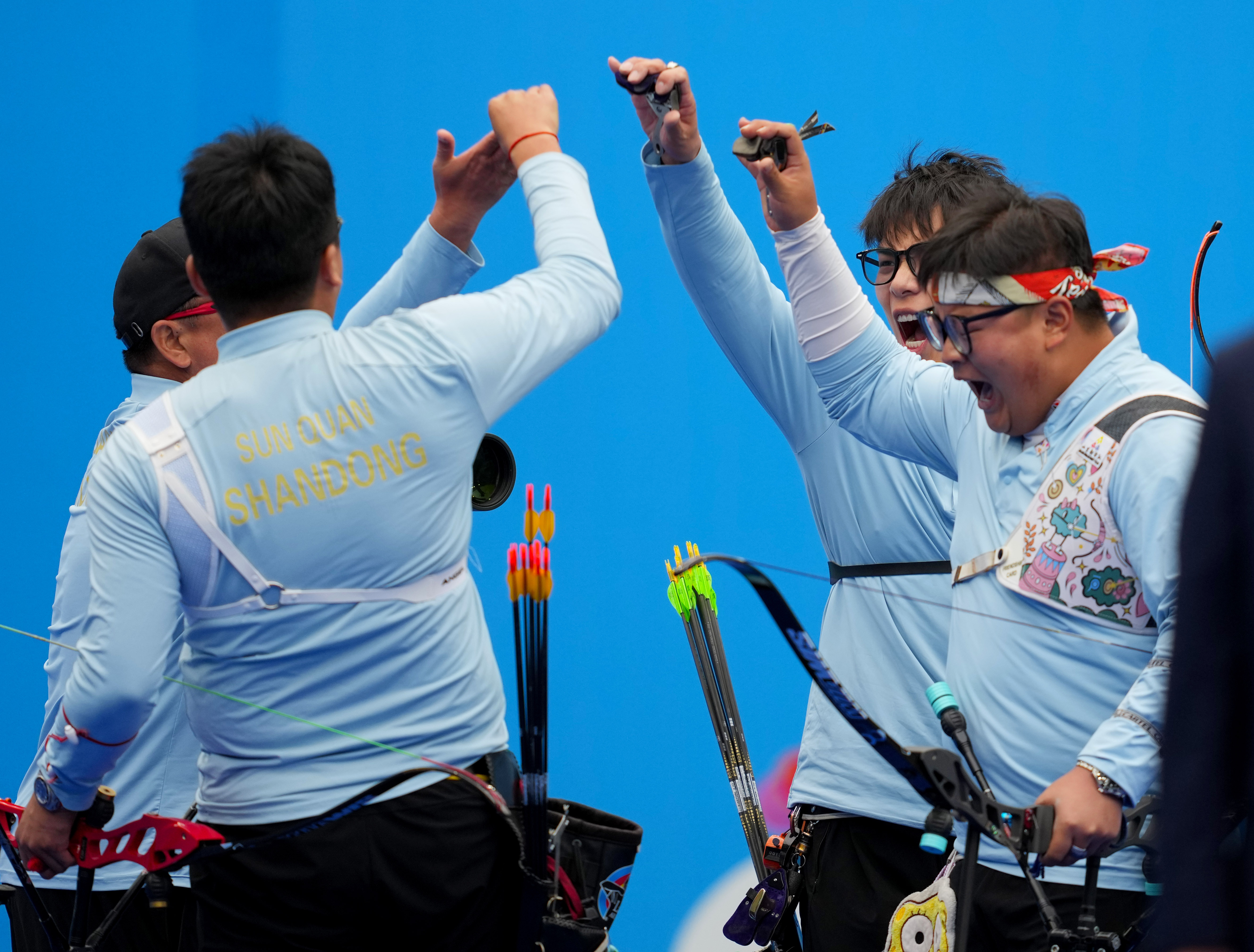 自信的不止是李梦麒。决赛第二局,比赛紧张到令人窒息,全场观众鸦雀无声。山东队冯浩箭刚离弦,他就大喊一声“漂亮”,声音响彻全场。话音刚落,箭头稳稳扎在了黄心上,“10环!”