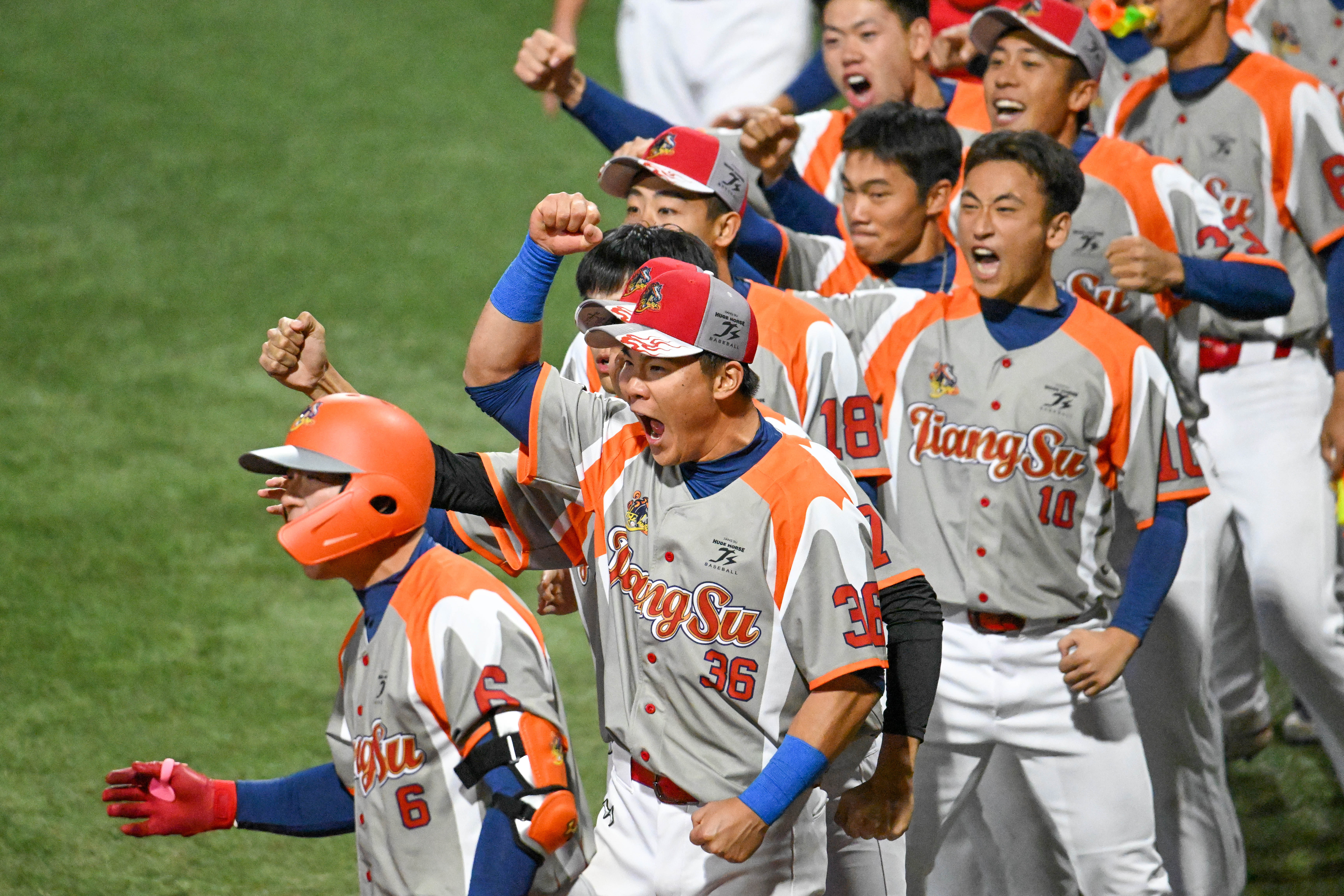 首局江苏队先声夺人,王磊安打帮助李孝炀得分,江苏队1:0领先。第四局广东队开始反击,吴启锐安打得分,江苏队失误致伊帅得分,广东队2:1反超。场上最大变化来自第五局,江苏队前后击出两次安打,随后陈晨轰下两分本垒打,江苏队单局连得4分,取得5:2的领先。此后江苏队乘胜追击,最终以11:2战胜广东队,赢得冠军。
