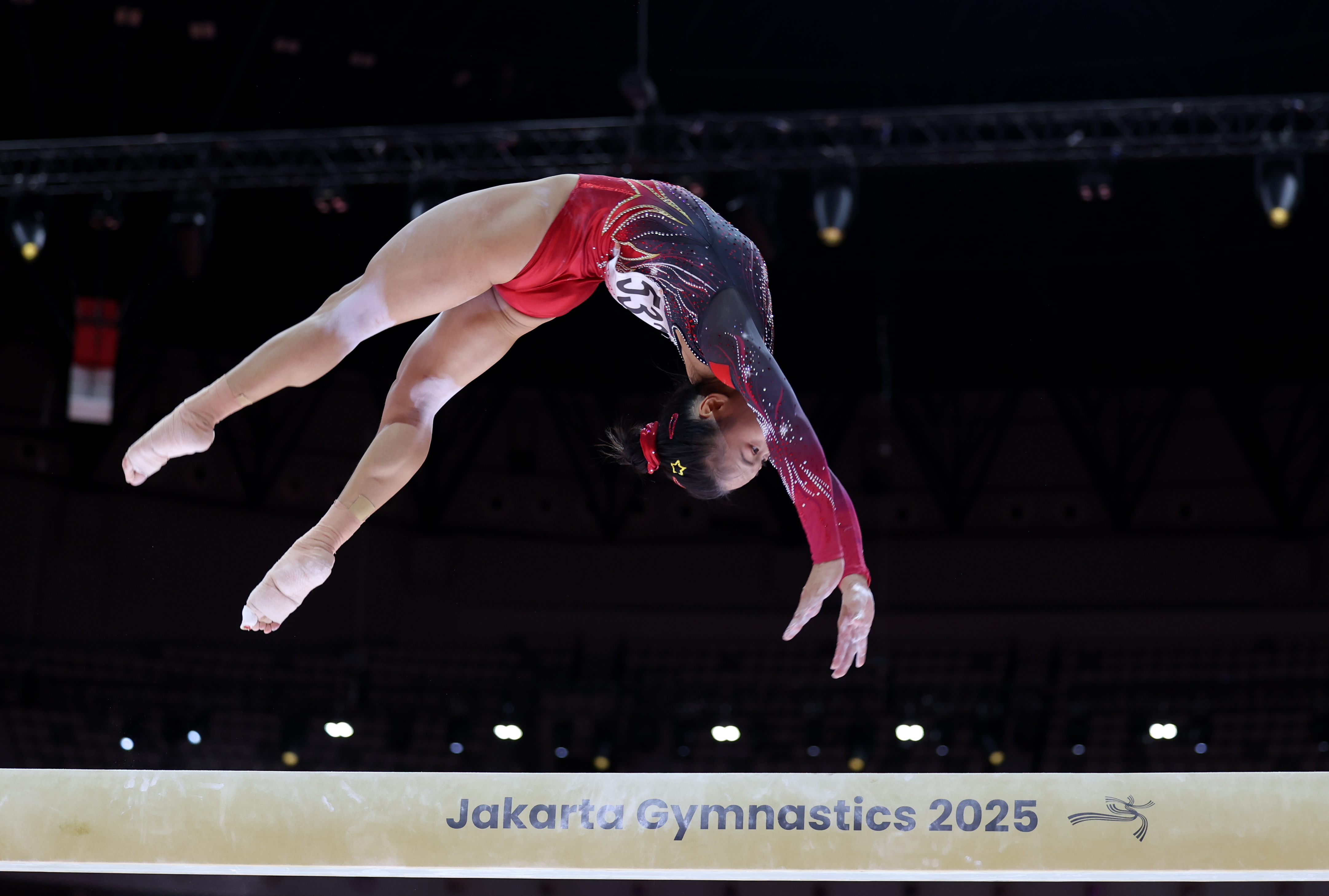 10月25日,中国选手张清颖在2025年国际体操联合会(FIG)竞技体操世锦赛女子平衡木决赛中夺得冠军。新华社记者 白雪飞 摄
