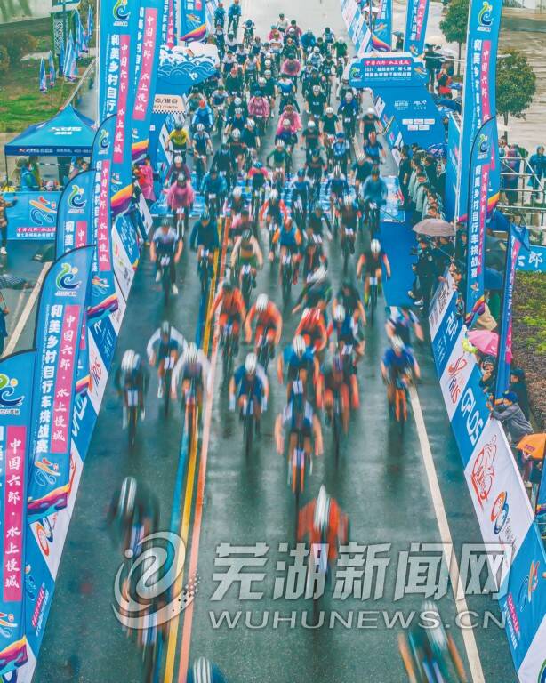 细雨如丝、绿柳含烟,3月24日,希望满满、生机勃勃的春日,“中国六郎·水上慢城”第七届和美乡村自行车挑战赛在湾沚区六郎镇彩虹大道开赛。来自全国20个省份70多个地市的500余名骑行爱好者“骑”聚六郎,在环圩赛道破风竞逐。