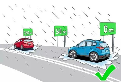 雨天道路湿滑,要保持低速行驶,增强预见性,驾驶过程中避免急加速、急刹车、急变道等,否则容易侧滑失控。