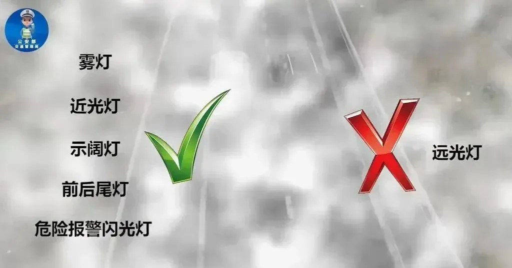 降雨导致能见度降低,应及时开启前照灯、示廓灯和后位灯,这不仅是为了照明,也是为了让其他交通参与者注意到你的存在。另外要注意,同方向行驶的后车与前车近距离行驶时,不得使用远光灯。
