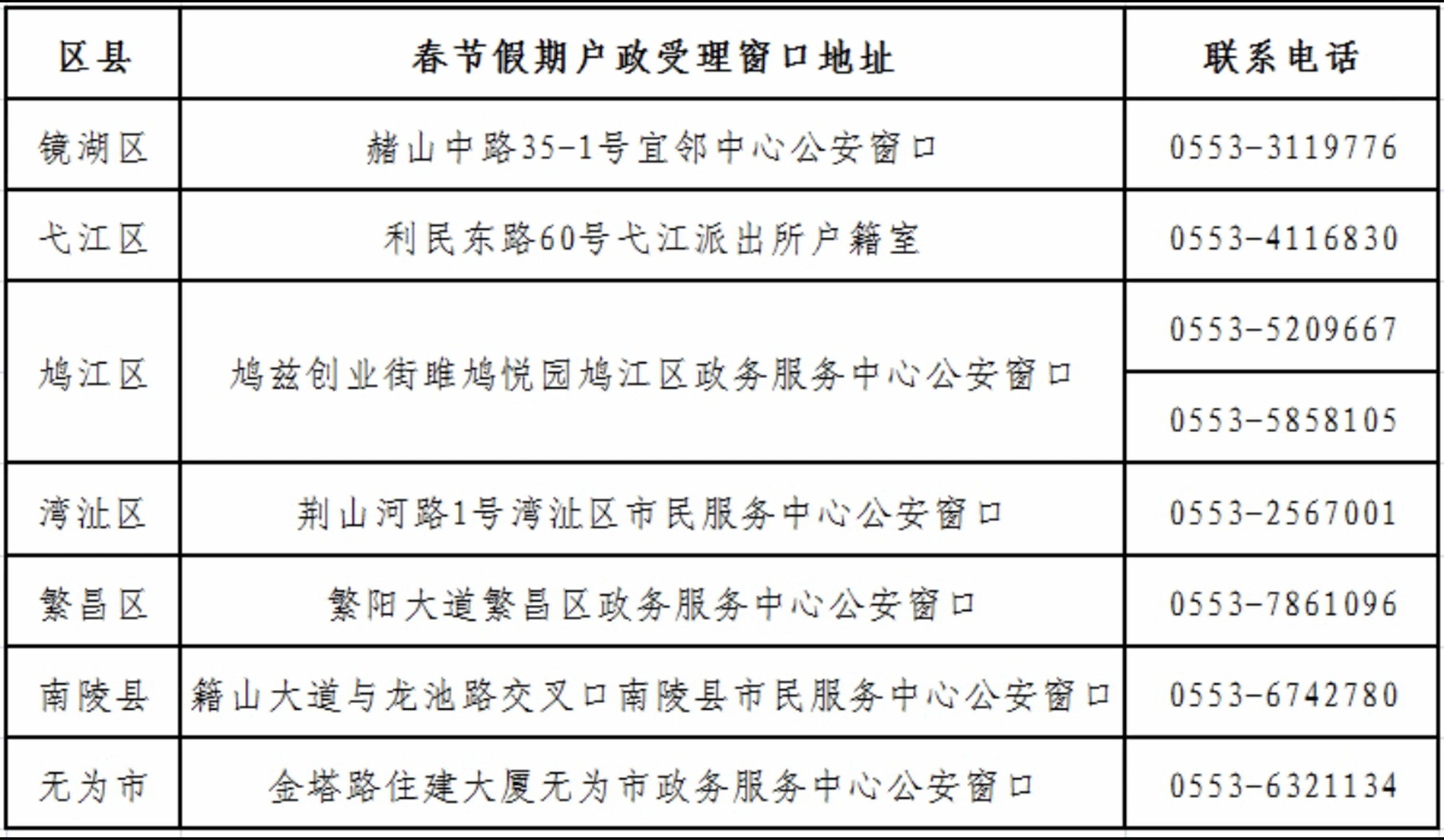 芜湖市鸠江区瑞祥路88号市民服务中心C1座公安出入境接待大厅;电话:0553—2963153。