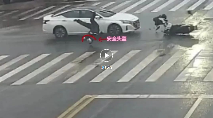 所幸其佩戴的安全头盔