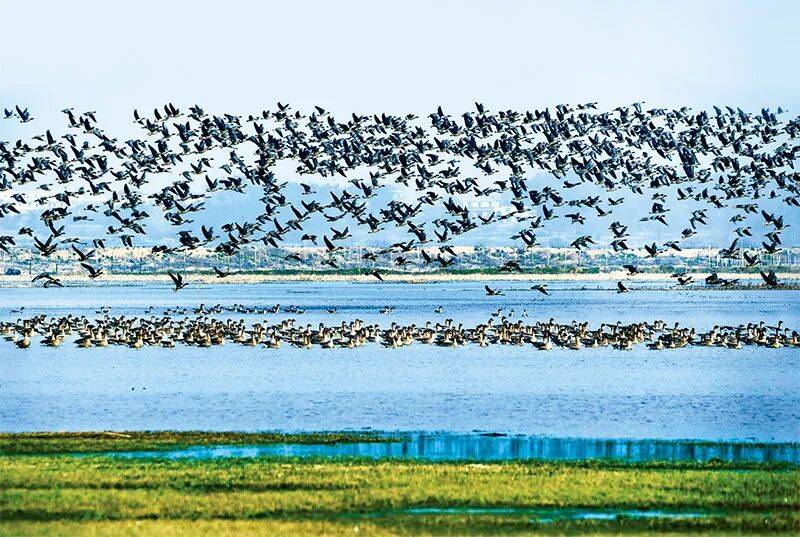 环境就是民生,青山就是美丽,蓝天也是幸福。安徽省坚持生态优先、绿色发展,扎实推进生态系统保护修复,不断增强人民群众的获得感、幸福感、安全感。图为安徽省安庆市宿松县华阳河湖群的壮阔景观。 安徽省委宣传部供图 雷鸣/摄