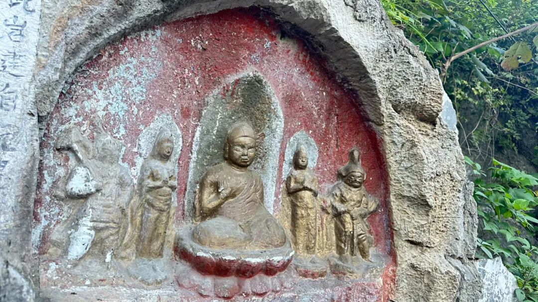 每一处新发现都是历史的馈赠。此次调查,在平铺镇五华山新发现的宋代摩崖石刻具有重要历史价值,是此次“四普”工作的重要收获。五华山摩崖石刻由一处佛龛造像和三处题记组成。佛龛为圆拱形,龛内雕有五组佛像。建于五代南唐时期,为安徽较早的摩崖造像,为研究五华山佛教文化提供了新的资料。
