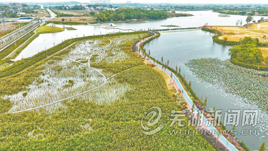 弋江区“三湖一坝”生态湿地公园是曾经的荒滩之地,经过水环境治理和生态修复之后华丽蜕变,吸引周边众多市民前来秋游打卡。这是记者10月26日用无人机拍摄的俯瞰图片。目前,公园二期正在如火如荼建设中,周边21公里环湖道路也在抓紧建设,预计明年6月底完工。