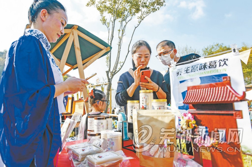 10月29日下午,“欢乐芜湖·慢享春谷”繁昌区第二届文化旅游节暨“传非遗 游春谷”繁昌非遗进景区活动,在途居马仁山露营基地开幕。游客们在一边品尝马仁山庄麻糍、楠溪农庄手工粑粑、童坝饭店葛粉揉糕、荻港老许香菜、新港金滕王茶干、代冲长枣等本土美食,一边欣赏由繁昌区文化馆精心组织的文艺演出,欢乐气氛浓郁。