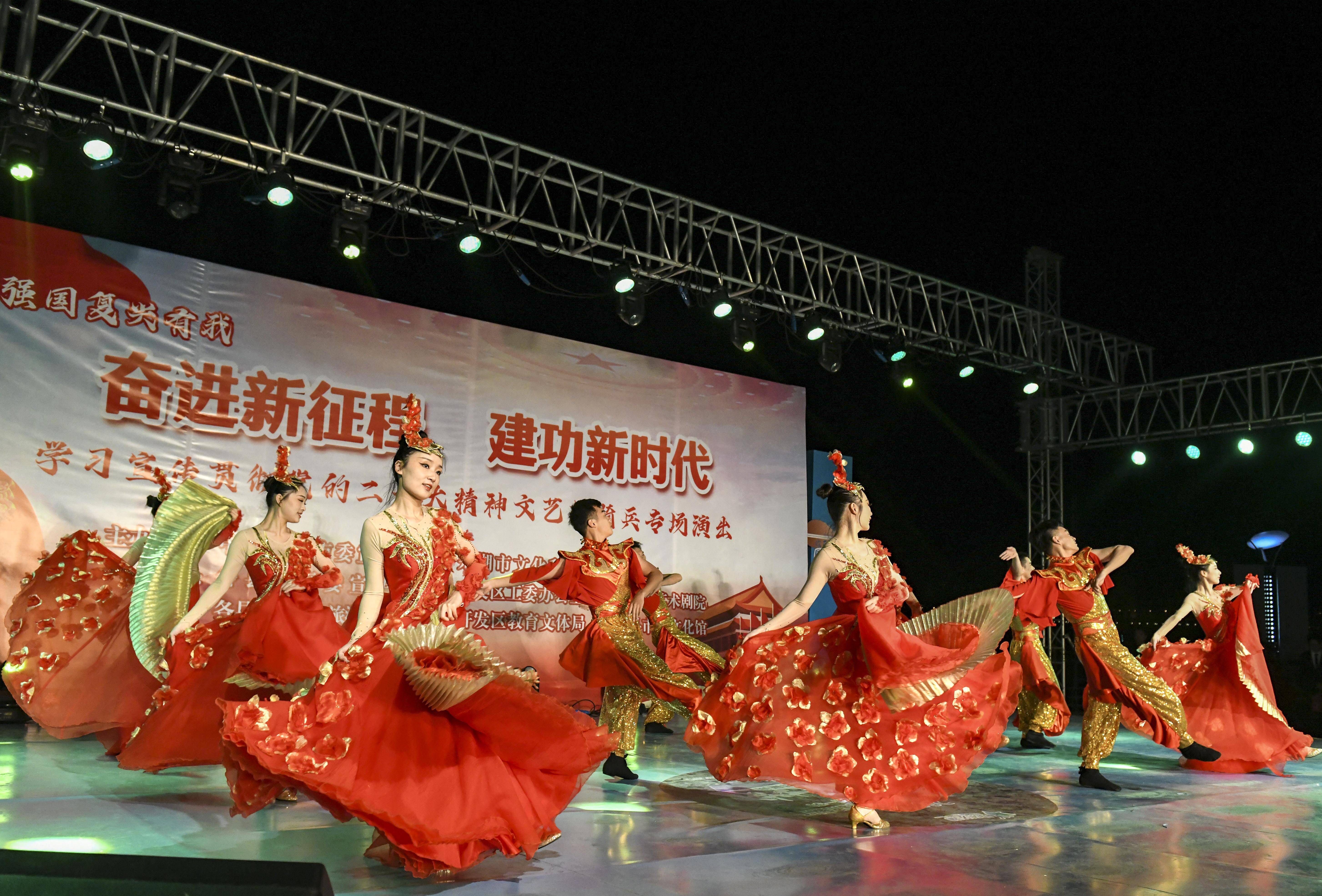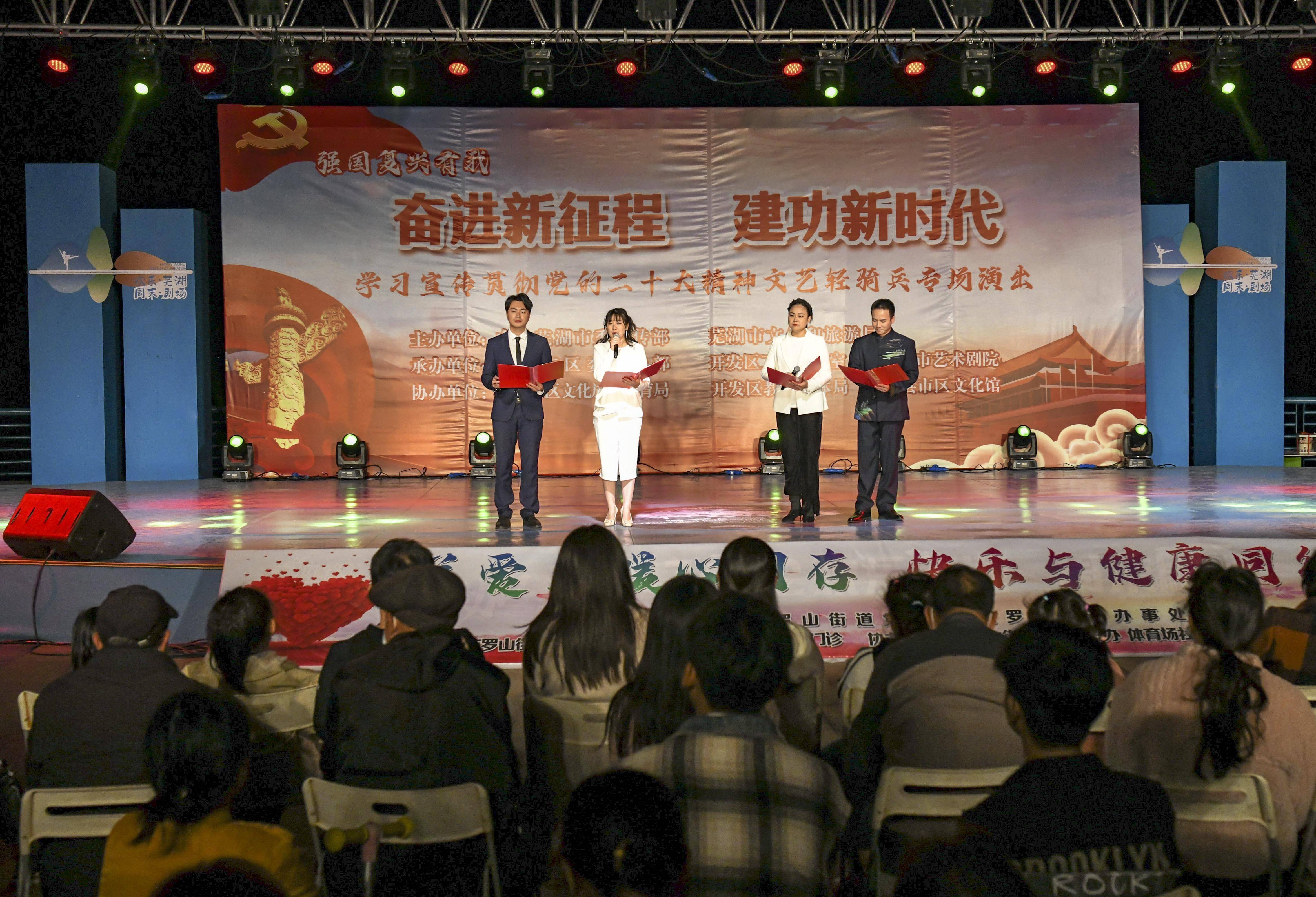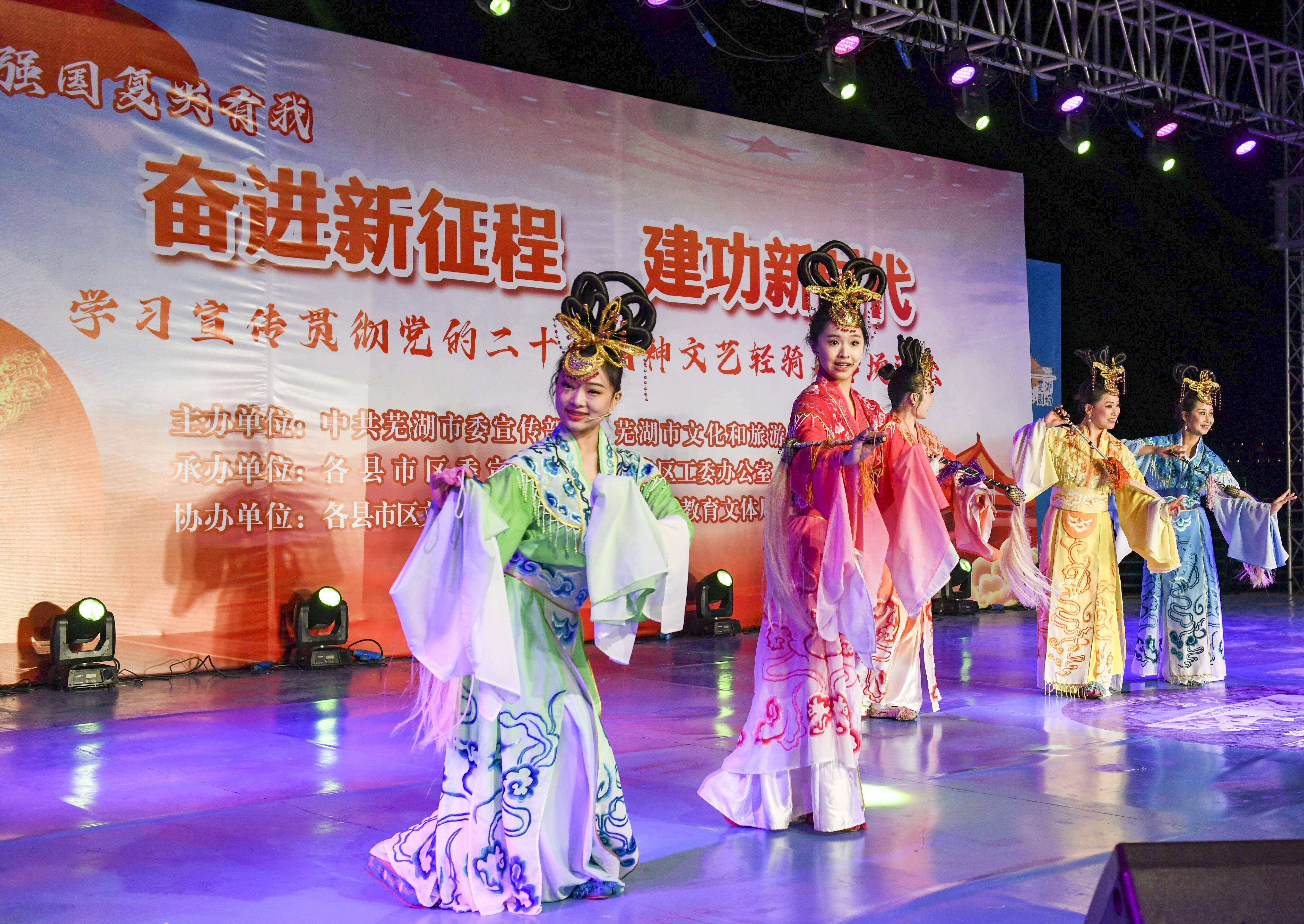 11月5日晚,芜湖滨江公园老海关前的临江广场上,歌声嘹亮,掌声不绝,以十里江湾的璀璨夜景做幕布,“强国复兴有我、奋进新征程、建功新时代”——学习宣传贯彻党的二十大精神文艺轻骑兵首场演出正在进行。