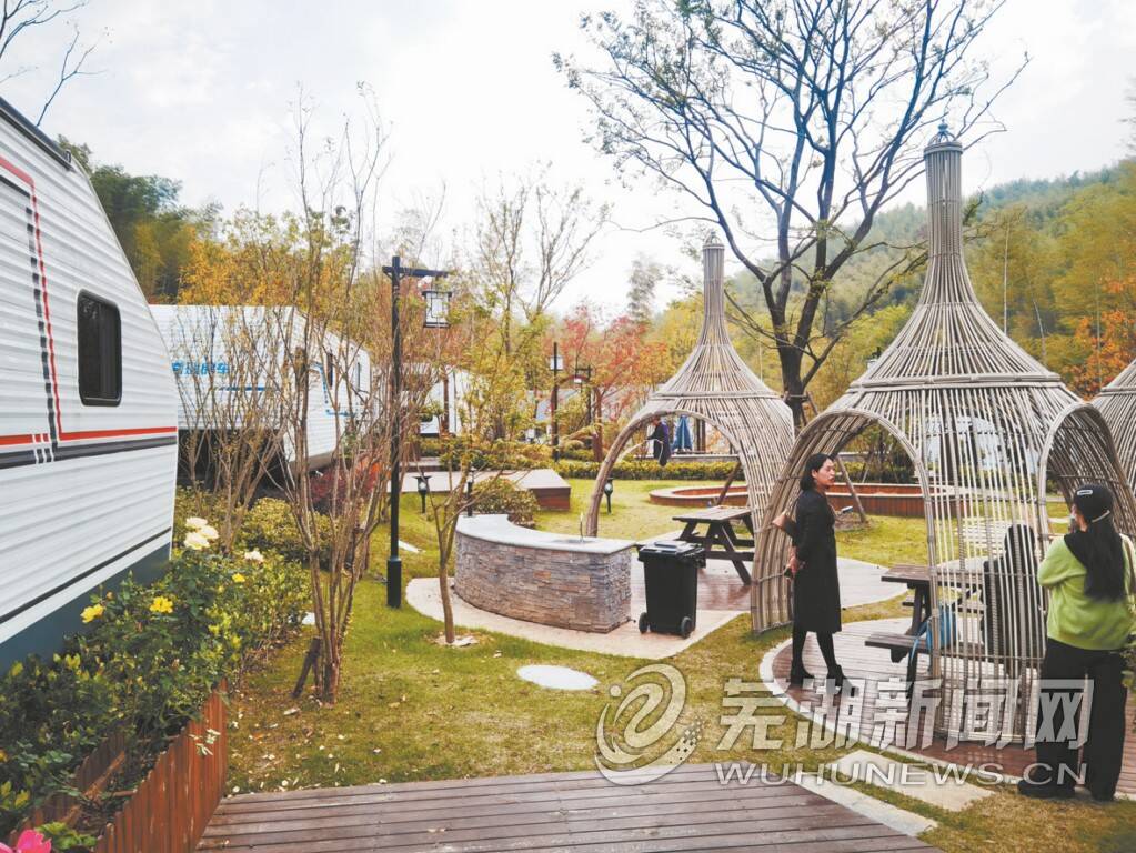 据介绍,2021年,途居芜湖马仁山露营地项目建成,改建民宿55间,并建成研学宿舍、餐饮中心、会议中心、拓展中心等配套设施。今年以来,露营地已接待游客多达10万人次。近期,露营地项目二期工程扩建的步伐快起来,届时特色住宿单元达到150个。山林竹海间,摆放着排列有序的房车,置身其中,既可以享受家庭团聚的温馨,又可以体验独特的山水田园之美。