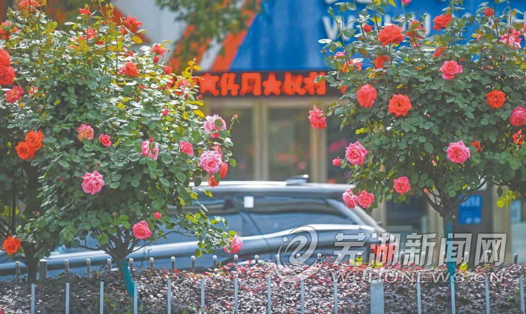 昨日,记者在银湖路上看到,月季花进入盛开期,有红色、粉色、黄色、白色……十分艳丽,为江城增添了一道独特的风景线。