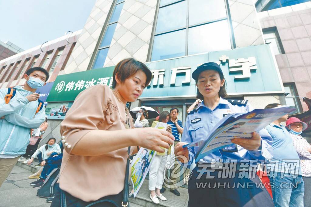 6月7日高考期间,在芜湖市第一中学、第十二中学等考点,芜湖市公安局鸠江分局、弋江分局纷纷组织警力,向考场外等候的家长进行面对面的高考反电诈宣传提醒(如图)。骗子利用高考来套路考生和家长的伎俩不少,主要有“高考真题答案”、“修改高考分数”、“院校提前录取”、“发放助学贷款”等。警方提醒,广大考生和家长切勿有“走捷径”、“找门路”等非分的想法,往往不但“事”办不成,金钱损失也不会小,竹篮打水一场空。