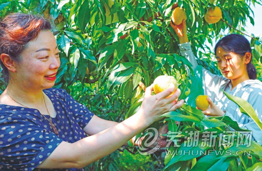 黄桃生八月,众人齐采摘。8月5日,由繁昌区农业农村局、繁昌区文化旅游体育局等指导的2023年第三届黄桃采摘节,在位于孙村镇黄浒社区的乐田小镇启幕。四方宾客齐聚,以桃为媒,搭采摘休闲台,唱经贸文旅戏,促进产业发展,赋能乡村振兴。
